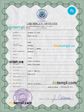 editable template, Micronesia vital record death certificate PSD template, fully editable