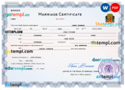 editable template, Democratic Republic of the Congo marriage certificate Word and PDF template, fully editable