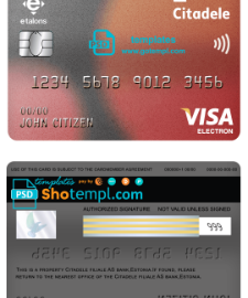 editable template, Estonia Citadele bank visa electron card template in PSD format, fully editable