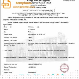 editable template, India birth certificate template in PSD format, fully editable
