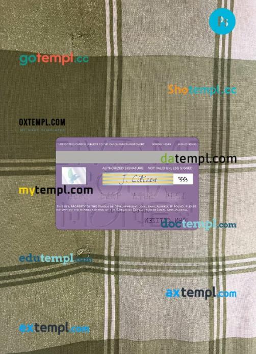 Our Algeria Banque de Développement Local visa card PSD template provides a multi-functional solution with a clean design, providing both the front and back of the card for a realistic look.