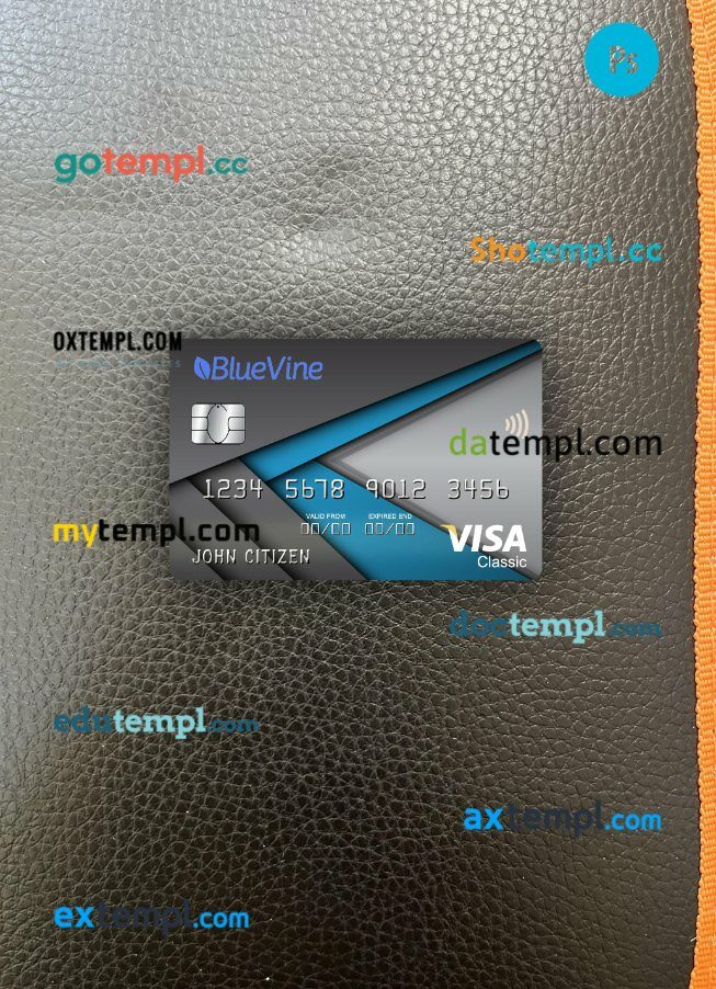Our USA California BlueVine bank visa classic card PSD template provides a multi-functional solution with a clean design, providing both the front and back of the card for a realistic look.